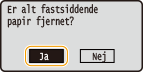 Hvis der er papirstop, vises <Fastsiddende papir.> på skærmen