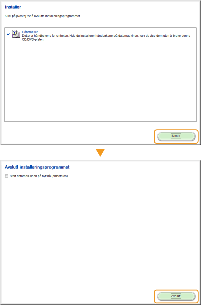 Installer e-håndbok på datamaskinen fra DVD-ROM som fulgte med maskinen.