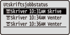 , vises et skjermbilde som lar deg sjekke statusen på dokumentet som skrives ut, samt statusen til maskinen (hvor mye toner som er igjen i tonerkassetten osv.) eller informasjon om nettverksinnstillingene, for eksempel maskinens IP-adresse.