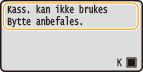Angi når denne meldingen visesDu kan angi enhver verdi som prosenten gjenværende toner som aktiverer denne meldingen. Vis tidspunkt for visning av varsel om kassettforberedelse