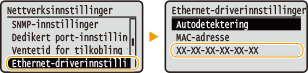 Det kan oppstå tilkoblingsfeil hvis du kobler maskinen til en svitsjehub eller en bro, selv om IP-adressen er riktig konfigurert. Dette problemet kan løses ved å angi et visst intervall før maskinen begynner å kommunisere. Angi en ventetid for å koble til et nettverk