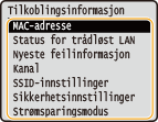 <Tilkob. inf.> og velg innstillingen du vi vise.
