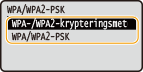 Vise WEP og informasjon om WPA/WPA2-PSK |