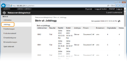 Klikk på [Jobbnummer] på sikre dokumenter og dokumenter som er midlertidig stanset, for å vise detaljert informasjon. Du kan kontrollere brukernavnet og sideantallet for det utskrevne dokumentet.