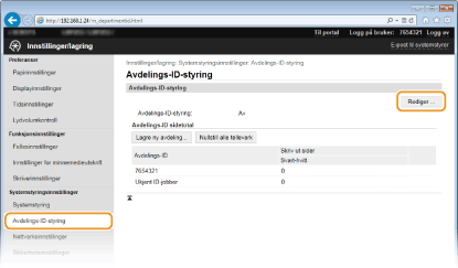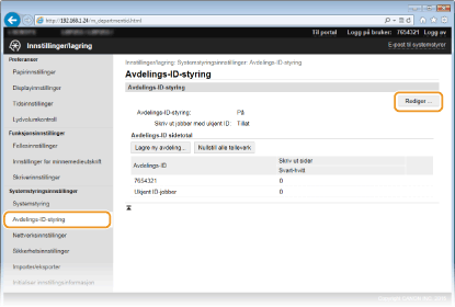 Redigere innstillingene for den registrerte avdelings-ID-en|