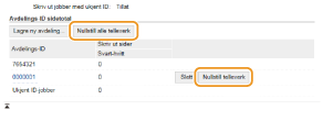 Hvis du vil stille tellerne tilbake til null, klikker du på den tilsvarende tekstkoblingen under [Avdelings-ID] og klikker deretter på [Nullstill telleverk]