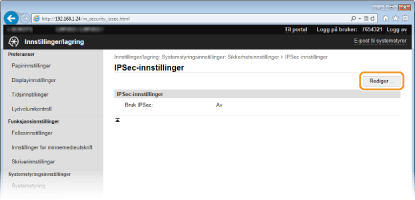 Bruke betjeningspaneletDu kan aktivere eller deaktivere IPSec-kommunikasjon ved å trykke på