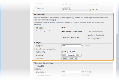 Angi innstillingene [Gyldig for] og [Autentisering]/[Kryptering]/[DH-gruppe].