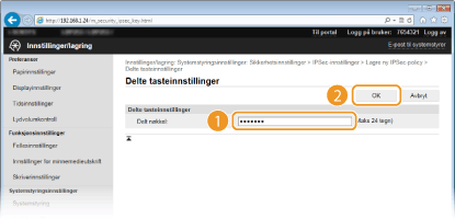 Tast inn opptil 24 alfanumeriske tegn for den forhåndsdelte nøkkelen, og klikk på [OK].