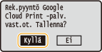 Laitteen rekisteröiminen Google Cloud Print -palveluun