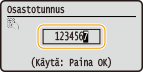 / -painikkeilla <Osastotunnus> tai <Järjestelmänvalvojan tunnus> ja paina -painiketta. |