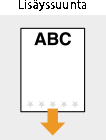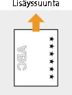 Lisää paperi etulogopuoli (se puoli, jolle asiakirjan ensimmäinen sivu tulostetaan) ylöspäin.