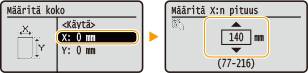 -painiketta.Syötä <X>-sivun pituus käyttäen painikkeita