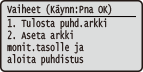 Puhdistus alkaa. Kun ilmoitus <Valmis.> näytetään noin 1 minuuttia myöhemmin.