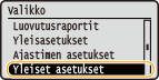 Asteriskilla (*) merkityt asetukset ovat käytettävissä vain, kun lisävarusteena saatava syöttölaite (kasetti 2) on asennettu.