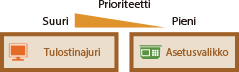 Asetusten ensisijaisuusJos tulostusasetus määritetään sekä tulostinajurissa ja laitteen käyttöpaneelissa, tulostinajurissa tehty määritys menee käyttöpaneelissa tehdyn edelle. Käyttöpaneelissa tehty määritys tulee voimaa tietyissä erityistapauksissa, esimerkiksi kun tulostetaan UNIX- tai muusta käyttöjärjestelmästä, johon ei ole saatavilla laitteen tulostinajureita.
