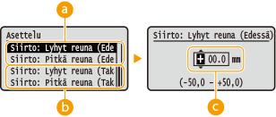 <Siirto: Lyhyt reuna (Edessä)>/<Siirto: Pitkä reuna (Edessä)>
