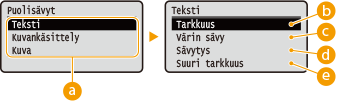 Kohdassa <Tummuus> määritetyt asetukset poistetaan käytöstä, kun <Väriaineen säästö> otetaan käyttöön.