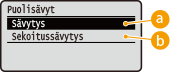 Kun tässä kohteessa valitaan <Tila 1> – <Tila 3>, <Erikoistulostustila A>-asetukseksi valitaan automaattisesti <Ei>. Erikoistulostustila A