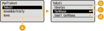 Asteriskit (*)Asetukset, joissa on merkintä "*1", ovat käytettävissä vain, kun lisävarusteena saatava syöttölaite (kasetti 2) on asennettu.