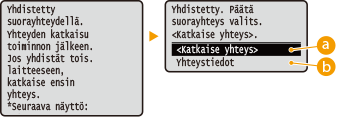 ![]() Yhteyden muodostamisen aikana seuraava näyttö tulee esiin.