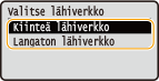 Valitse <Kiinteä lähiverkko> tai <Langaton lähiverkko> ja paina sitten