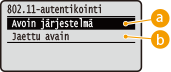 -painiketta.![]() <Avoin järjestelmä>Asettaa Avoin järjestelmä -todennuksen, josta käytetään myös nimeä "avoin todennus".