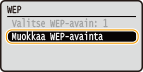 Valitse <Muokkaa WEP-avainta> ja paina