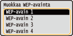 Valitse muokattava WEP-avain (1–4) ja paina
