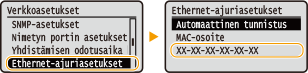 Kun laite kytketään keskittimeen tai siltaan, yhteyden muodostus saattaa epäonnistua, vaikka IP-osoite on määritetty oikein. Tämän ongelman voi ratkaista asettamalla ajan, jonka laite odottaa ennen tiedonsiirron aloittamista. Verkkoon yhdistämisen odotusajan asettaminen