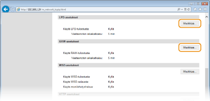 Asetusten valitseminen käyttöpaneelistaLPD-, RAW- ja WSD-asetuksia voidaan käyttää myös painamalla käyttöpaneelissa
