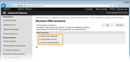 Valitse WSD-tulostuksen valintaruutu. Kun ei käytetä WSD-tulostusta, poista valintaruudun valinta. [Käytä WSD-selausta]