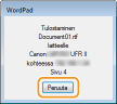 Peruuttaminen sovelluksestaJoissakin sovelluksissa esiin tulee alla näytetyn kaltainen näyttö. Voit peruuttaa tulostuksen valitsemalla [Cancel] (Peruuta).
