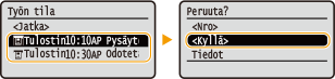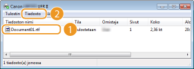 Valitse asiakirja <Tulostustyön tila> -näytöstä