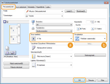 Valitse kohdassa [Sivun asettelu], montako sivua yhdelle arkille tulostetaan