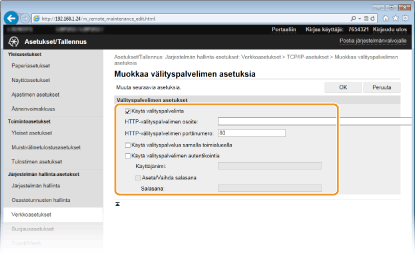 Valitse [Käytä välityspalvelinta] -valintaruutu ja määritä vaaditut asetukset.