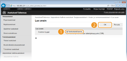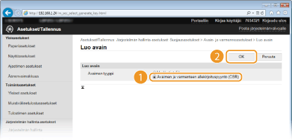 Valitse [Avaimen ja varmenteen allekirjoituspyyntö (CSR)] ja sitten [OK].