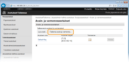 Valitse [Tallenna] tallennettavan avainparin oikealla puolella.