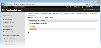 Valitse [Avain- ja varmenneasetukset] avainparin asentamiseksi tai [CA-varmenteen asetukset] CA-varmenteen asentamiseksi.