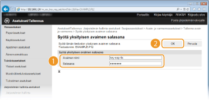 Syötä avainparin nimi ja salasana ja valitse [OK].