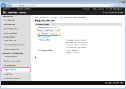 [Avain- ja varmenneasetukset] tai [CA-varmenteen asetukset].