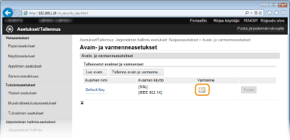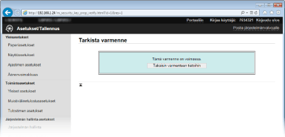 Vahvista avainpari valitsemalla [Avain- ja varmenneasetukset] tai CA-varmenne valitsemalla [CA-varmenteen asetukset].