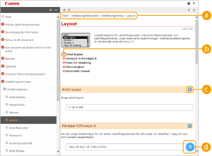 Klicka när du vill ställa in parametrar för att bestämma hur e-handbok ska visas, t.ex. teckenstorlek eller layout.