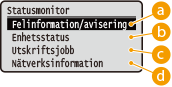 Visar enhetens status, såsom mängden papper eller återstående mängd i tonerpatronen.