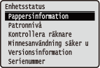 <Kontrollera räknare>Visar det totala antalet sidor som har skrivits ut på enheten.