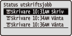 visas en skärm som du använder för att kontrollera status för dokument som skrivs ut, men även enhetens status (återstående toner i tonerpatronen osv.) eller information om nätverksinställningar som t.ex. enhetens IP-adress.