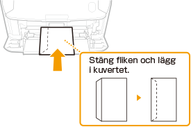 I det här avsnittet beskrivs hur du fyller på kuvert i önskad riktning samt vad du måste göra innan du fyller på kuvert. En beskrivning av hur du fyller på kuvert i multiutmatningsfacket finns i Fylla på papper i multiutmatningsfacket.