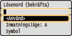 Bekräfta lösenordet genom att ange det en gång till, välja <Använd> och trycka på