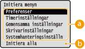 Om inställningarna för Fjärranvändargränssnittet återställsInställningen PIN - fjärrgränssnitt återställs också. Efter en initiering ska du återställa PIN-koden för fjärrgränssnittet. Konfigurera fjärranvändargränssnittet