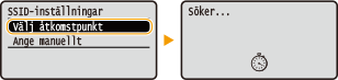 SäkerhetsinställningarOm den trådlösa anslutningen är inställd genom att en trådlös router har valts är WEP-autentiseringsmetoden inställd på <Öppet system> eller också är WPA/WPA2-krypteringsmetoden inställd på <Auto> (AES-CCMP eller TKIP). Om du vill välja <Delad nyckel> för WEP-autentisering eller <AES-CCMP> för WPA/WPA2-kryptering, måste du upprätta anslutningen med den manuella inmatningsmetoden (Upprätta anslutning genom att ange detaljerade inställningar).